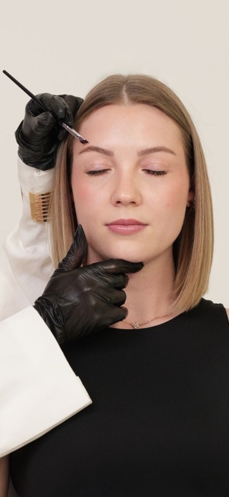 Beim Browlift werden die Brauen mithilfe spezieller Lotionen sanft in Form gebracht und fixiert. So wirken sie voller, definierter und optisch angehoben. Das Ergebnis: ein offener, gelifteter Blick ganz ohne Nadeln oder chirurgischen Eingriff.